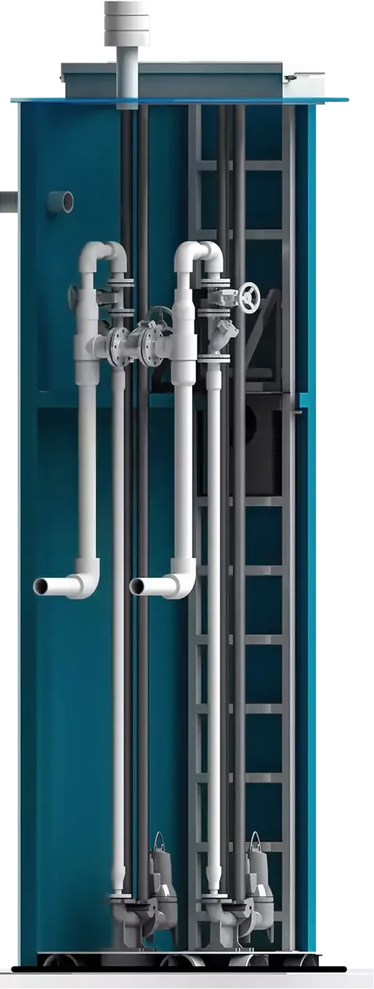 Насосные станции в подземном исполнении. Монтируют в подземных резервуарах из ПНД, стеклопластика.