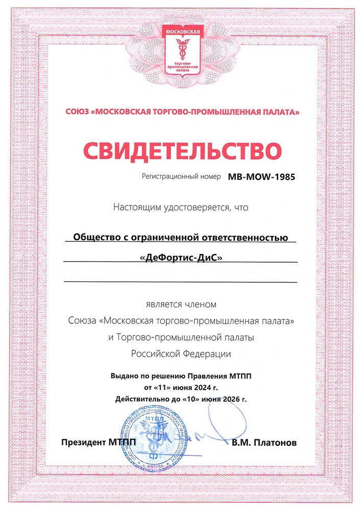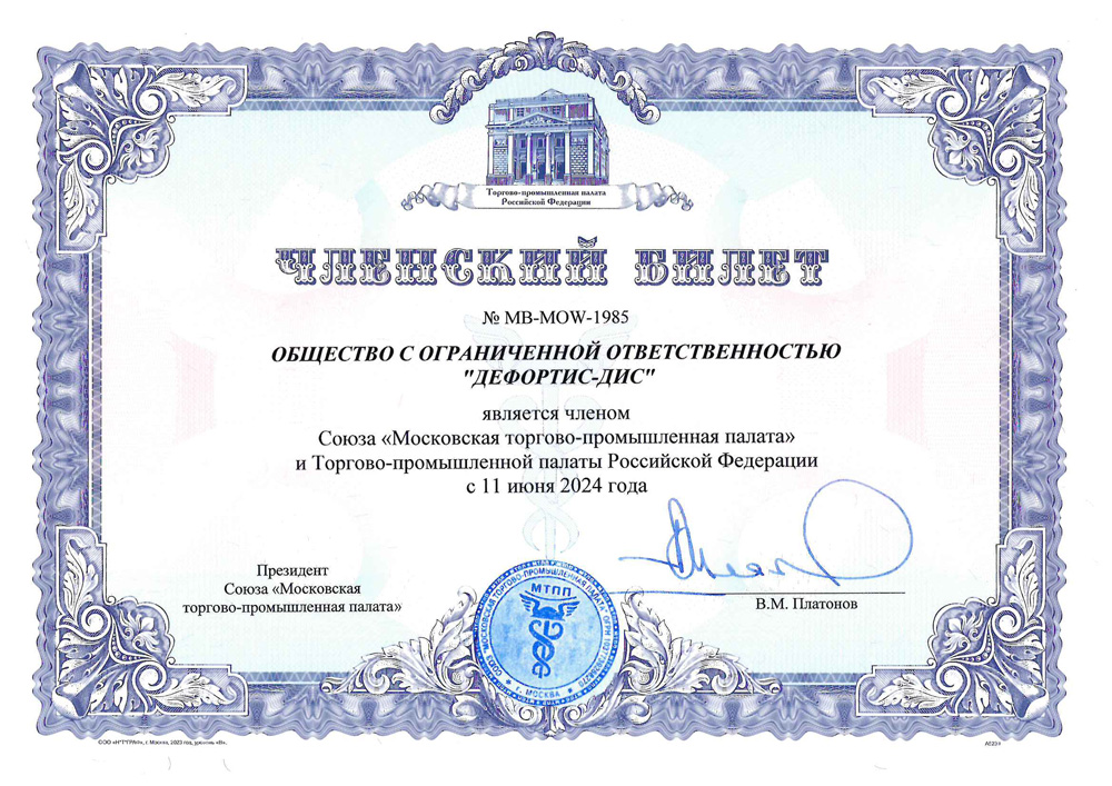 Основной задачей Московской торгово-промышленной палаты является поддержка бизнеса и содействие развитию предпринимательства в Москве, выстраивание эффективных взаимоотношений бизнеса и власти. В этом 2024 году ООО «Дефортис-Дис» еще более окрепла и продолжает активно увеличивать свои обороты, мы уже готовы обмениваться знаниями с партерами, помогать развитию международных деловых связей через обмен опытом с компаниями-участниками МТПП. Совершенно точно, Дефортис-Дис будет в центре деятельности МТПП и уже принял активное участие в работе Гильдии предприятий энергетического комплекса МТПП, куда нашу компанию приняли сразу после вступления в МТПП.