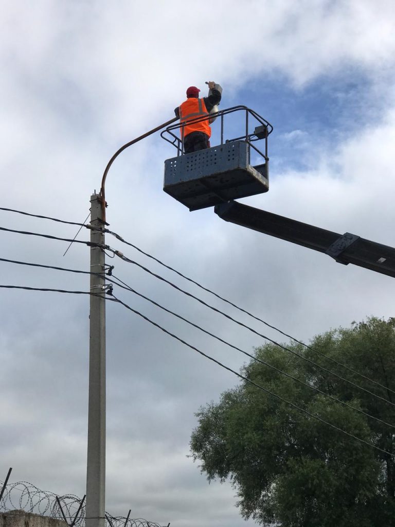 В восточной части периметра терминала нашими специалистами были демонтированы и утилизированы устаревшие светильники с лампами ДРЛ, а на их место, был выполнен монтаж 28-ми новых высокоэффективных светодиодных светильников производства компании IEK (см. приложение 1), при помощи автовышки.