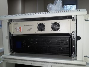 Проект был выполнен ООО «ДеФортис-ДиС» в сжатые сроки. Для реализации технического решения применен ИБП производства Kehua Tech KR10kVA-RM и источник питания постоянного тока отечественного производства 220/110В, с учетом аккумуляторных батарей AGM и кастомизированных батарейных шкафов для оптимального размещения в контейнерном блок-боксе.