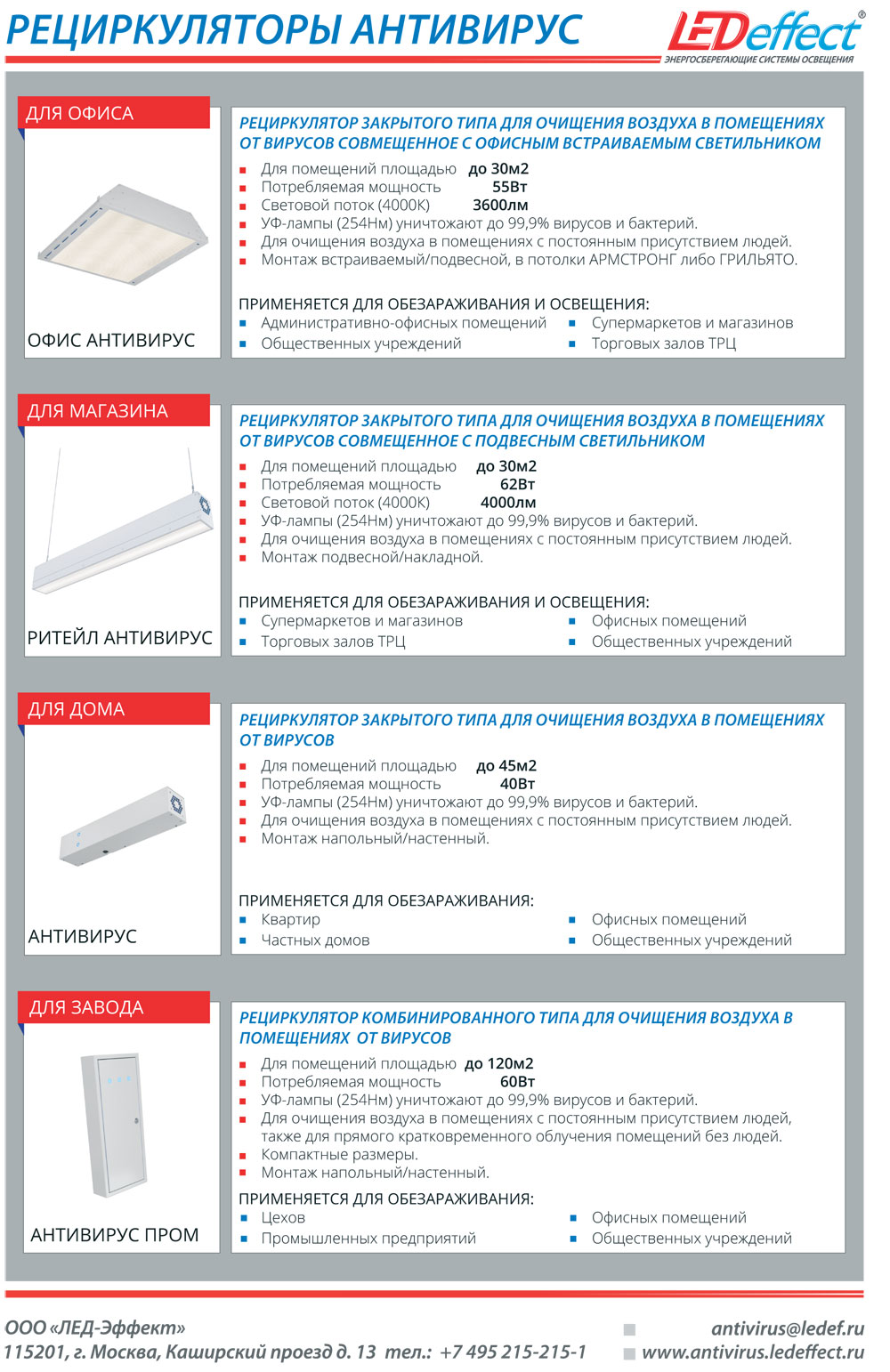Компания ООО «Дефортис-ДиС» расширяет линейку устройств нового типа для борьбы со сложными эпидемиологическими ситуациями в целом и с пандемией коронавируса в частности. Новые типы рециркуляторов от ведущего российского производителя светодиодного освещения «ЛЕД-Эффект» включают решения для дома и офиса, торговых помещений, промышленности.
