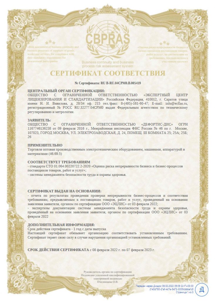 PRAS. СТО 01.064.00220722.2-2020 – это сертификат одной из добровольных систем сертификации под названием «CBPRAS». Расшифровывается аббревиатура PRAS как «process risk assessment system» и переводится на русский язык как «Система оценки риска непрерывности бизнеса (в том числе – бизнес-процессов поставщиков товаров, работ и услуг»).