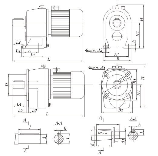 | 4МЦ2С | d1 | d2 | d3 | L | L1 | b | t | n | m |