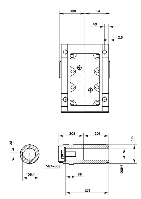 KA127B — корпус B / лапы / полый вал
