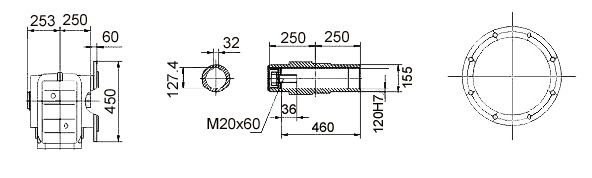 | К-157 А-157В | 120H7 | 155 | 253 250 | 40 2.5 | 36 460 | M 24×60 | 127.4 32 | 705 | 457 250 | 426 | 71.7 | 550 |