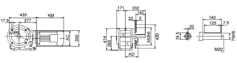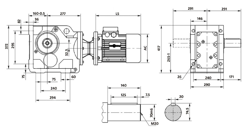 | К-97 КА-97В | 295 240 240 | 372 294 290 | 75 75 171 | 265-1160-0.5 | 36 | 26 | 82 60 | 70m6 | 140 | 7.5 125 | M20 | 74.5 20 |