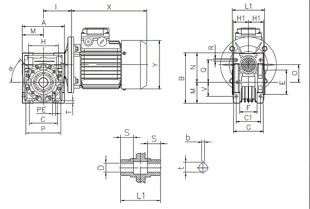 Мотор-редуктор NMRV 063 может быть смонтирован в любом пространственном положении.