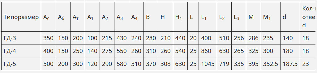 Габаритные и присоединительные размеры редуктора ГД-4