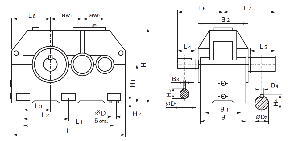 Редуктор цилиндрический горизонтальный с зацеплением Новикова Ц2У-355Н является