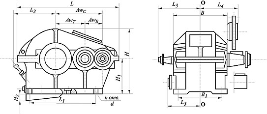 Габаритные и присоединительные размеры редуктора Ц2-350