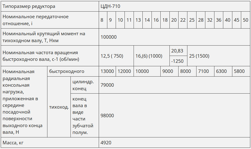 Технические характеристики редукторов ЦДН-710