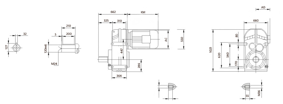 Мотор-редуктор F157 имеет возможность быть оснащенным от двух до трех передаточных ступеней и является наиболее мощным приводом в линейке F. Он состоит из чугунного корпуса и асинхронного трехфазного электродвигателя мощностью до 200 кВт. Для передачи крутящего момента применяются цилиндрические зубчатые передачи с шлифованными шестернями. Мотор-редуктор типоразмера F157 выпускается с возможностью полого или цельного выходного вала.