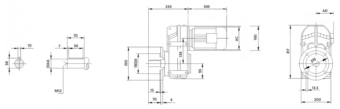 Цилиндрический мотор-редуктор F57 с плоским дизайном предназначен для длительной работы при как постоянной, так и переменной нагрузке. Максимальная мощность двигателя составляет 5,5 кВт. Этот агрегат доступен в пяти различных монтажных исполнениях. Он может быть установлен с использованием лап или фланца. Возможны варианты монтажа как на цельном, так и на полом валу.