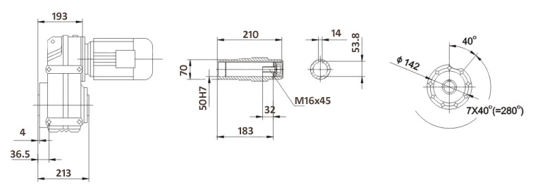Мотор-редуктор F77 имеет компактный чугунный корпус и включает в себя асинхронный трехфазный электродвигатель. Максимальная мощность этого агрегата составляет 11 кВт. В зависимости от требований, мотор-редуктор может быть снабжен двумя или тремя передаточными ступенями, а также полым или цилиндрическим валом. Производитель данного устройства — компания SUPROR из Китая.